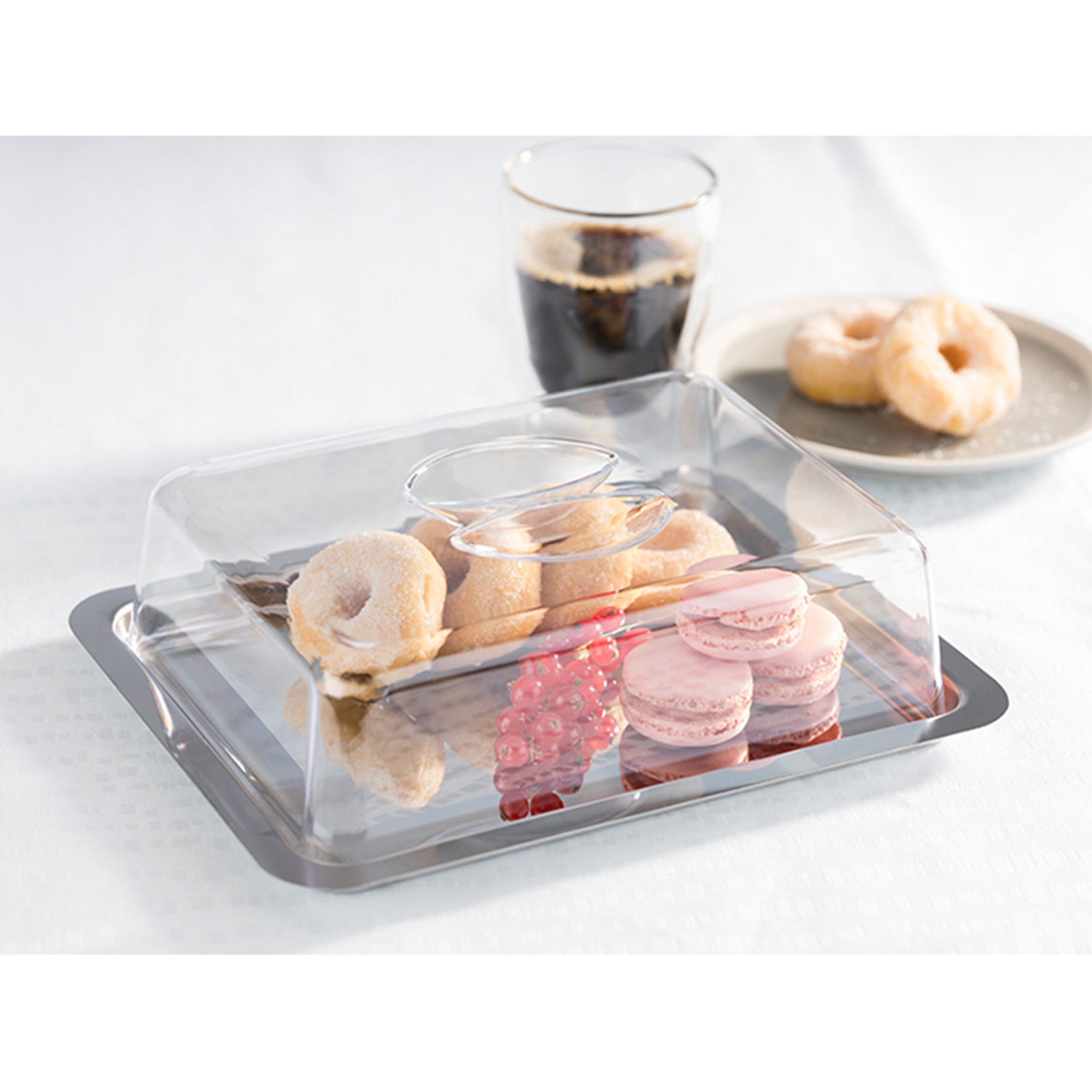 Tablett mit Haube 25 x 19 cm, Haubenhöhe 7 cm Tablett: 18/0 Edelstahl